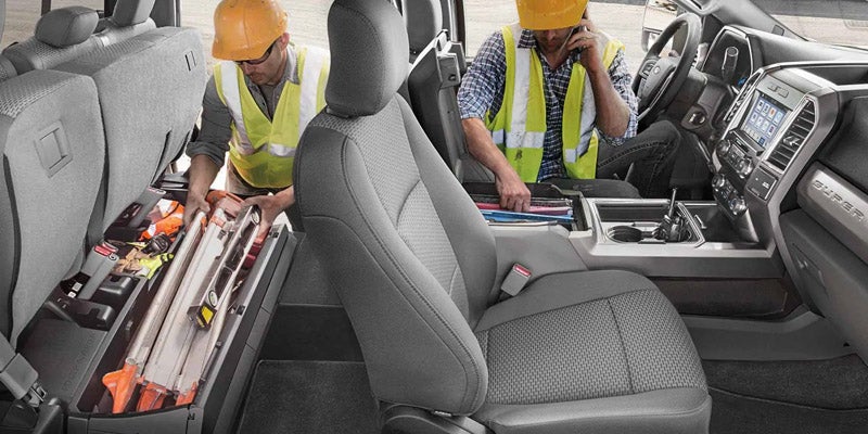 Interior space definitely won't be a concern in your new 2019 Ford F-250 Super Duty. Passengers sitting in the front can adjust their seats without worrying about invading the space of backseat riders who are provided a generous amount of knee room and width. Ford recognizes that you not only want comfort in your new truck, but also functionality with features like a customizable digital display where you can monitor tire pressure for both the trailer and the truck without having to leave the cab. While the majority of functions are handled on a touch screen via Ford's Sync 3 System, traditional knobs are still available for controlling the temperature and radio.
