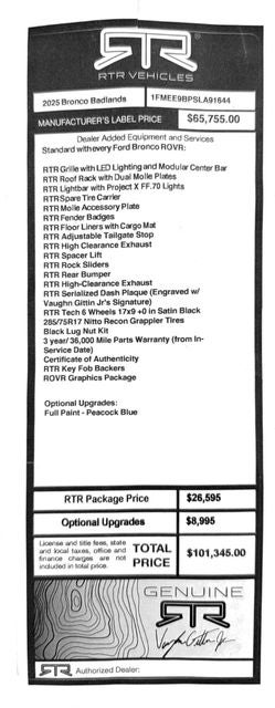 2025 Ford Bronco RTR ROVR CORPORATE DEMO