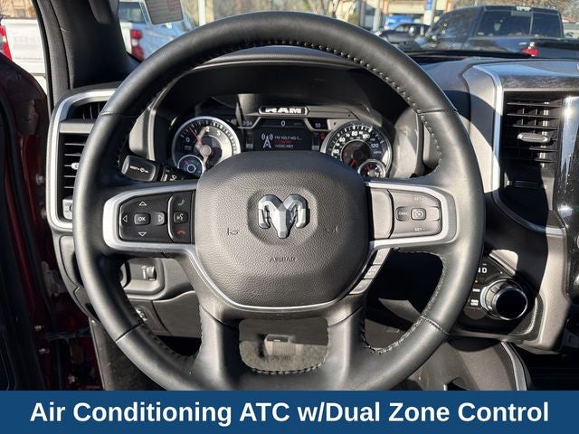 CARFAX One-Owner. Clean CARFAX. Delmonico Red Pearlcoat 2022 Ram 1500 Big Horn/Lone Star 4WD 8-Speed Automatic HEMI 5.7L V8 Multi Displacement VVT 115V Auxiliary Power Outlet, 115V Auxiliary Rear Power Outlet, 2nd Row In Floor Storage Bins, 4G LTE Wi-Fi Hot Spot, 8.4 Touchscreen Display, Air Conditioning ATC w/Dual Zone Control, All Plant-Installed Decals, Apple CarPlay, Auto-Dimming Exterior Driver Mirror, Auto-Dimming Rear-View Mirror, Big Horn Badge, Big Horn Level 2 Equipment Group, Black Exterior Mirrors, Black Interior Accents, Black Premium Power Mirrors, Bluetooth® Handsfree Phone & Audio, Body Color Exterior Mirrors, Body Color Front Bumper, Body Color Premium Power Mirrors, Body Color Rear Bumper w/Step Pads, Bridgestone Brand Tires, Class IV Receiver Hitch, Cluster 7.0 TFT Color Display, Connectivity - US/Canada, Convex Wide-Angle Mirror Insert, Deluxe Cloth Bucket Seats, Exterior Mirrors Courtesy Lamps, Exterior Mirrors w/Heating Element, Exterior Mirrors w/Supplemental Signals, For Details, Visit DriveUconnect.com, Global Telematics Box Module (TBM), Glove Box Lamp, Google Android Auto, GPS Antenna Input, GPS Navigation, Heated Front Seats, Heated Steering Wheel, Integrated Center Stack Radio, Media Hub w/2 Charge Only USBs, ParkSense Front/Rear Park Assist w/Stop, Power 2-Way Driver Lumbar Adjust, Power 8-Way Driver Seat, Power Adjustable Pedals, Power-Folding Mirrors, Quick Order Package 25Z Big Horn, Radio: Uconnect 5 W w/8.4 Display, Rear Dome w/On/Off Switch Lamp, Rear Power Sliding Window, Rear Window Defroster, Remote Start System, Security Alarm, SiriusXM Radio Service, SiriusXM Satellite Radio, Sport Appearance Package, Sport Decal, Sun Visors w/Illuminated Vanity Mirrors, Trailer Brake Control, Trailer Light Check, Trailer Reverse Steering Control, Trailer Tire Pressure Monitoring System, Trailer Tow Group, Universal Garage Door Opener, USB Host Flip.