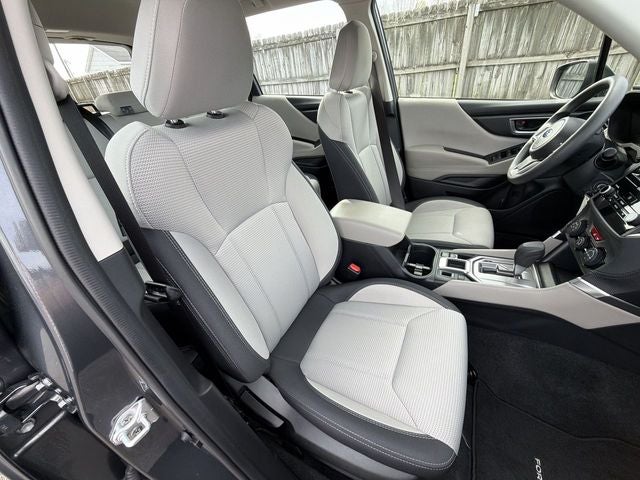 Comfortable and versatile, our Forester cabin makes it easy to master the miles with supportive cloth seats, a folding second row, a multifunction steering wheel, automatic climate control, center-console storage, and a standard Starlink infotainment system. It features a 6.5-inch touchscreen, Android Auto®/Apple CarPlay®, Bluetooth®, and a four-speaker sound system for easy connections.